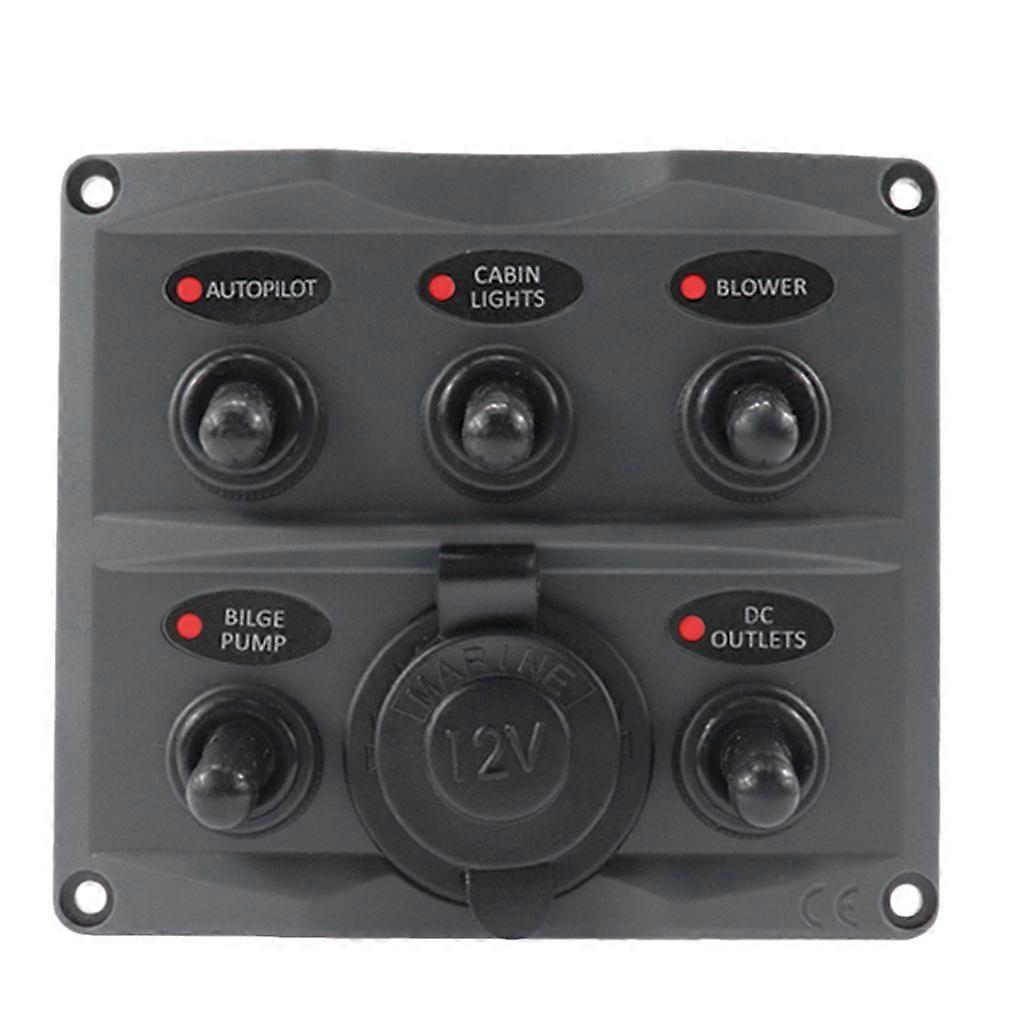 5 Gang Circuit LED Marine Waterproof Toggle Switch Panel Fuse Power Socket