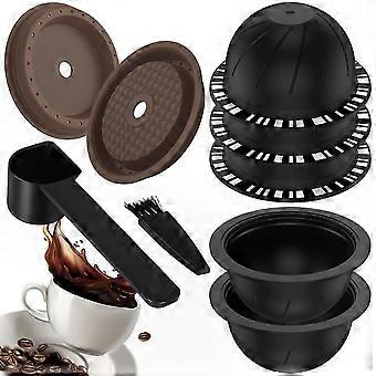 5-Pack Reusable Coffee Pods for Vertuo Machines, Includes 2 Silicone Lids, 1 Spoon, and Brush
