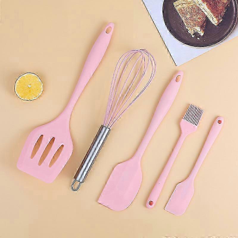 5-Piece Silicone Kitchen Utensil Set Includes Small Brush, Small Scraper, Large Scraper, Egg Beater, and Spatula for Cooking, Baking, and Mi