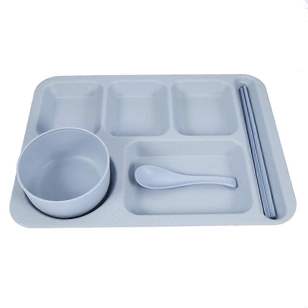5-sections Wheat Straw Divided Dinnerware Tableware Set compatible Students (Blue)