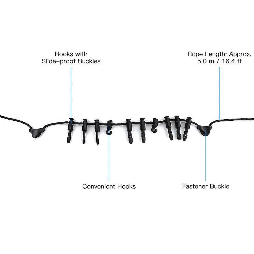 Outdoor 5 Meters Hanging Rope with Hooks Multipurpose Camping Clothes Line for Camping Hiking