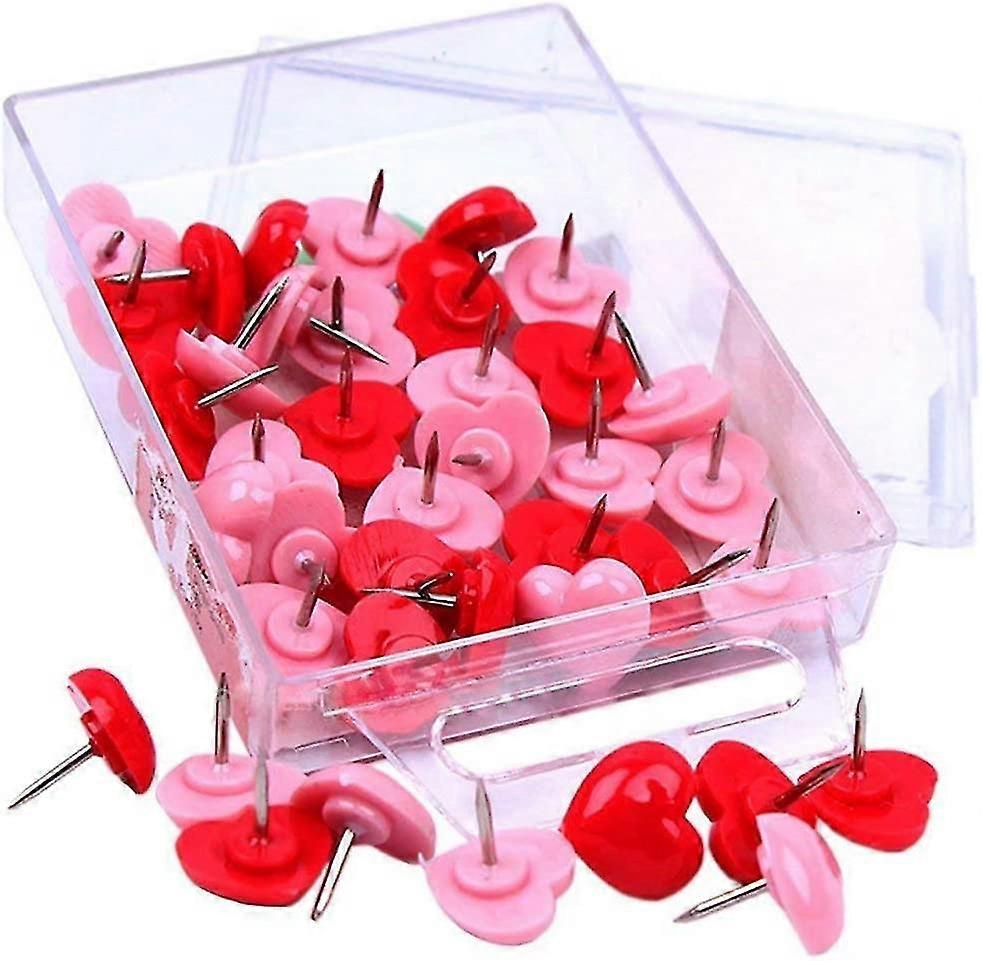 50 Pcs Heart Push Pins, Red Bulletin Boards Thumb Tacks, Pink Cute Wall Tacks Decorative