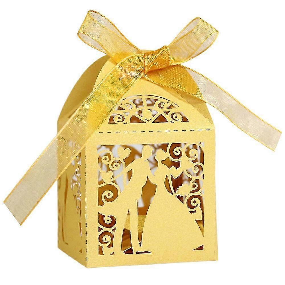 50 Pack Wedding Favor Boxes, Hollow Couple Pattern Wedding Party Favor Boxes with Ribbons, Small Paper Gift Boxes Lace Candy Boxes for Wedding Baby Sh