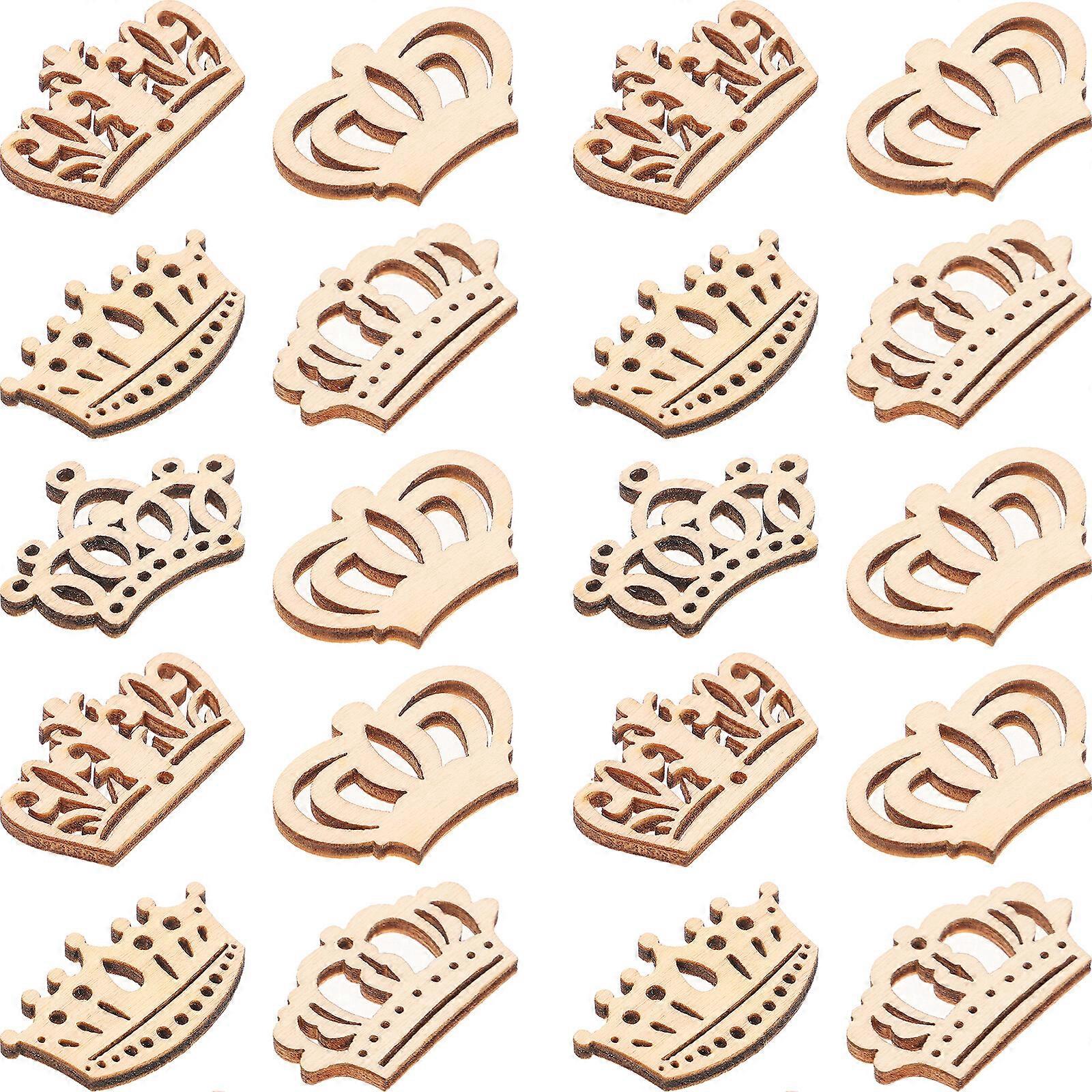 50pcs Cartoon Hollow out Crown Shape Wooden Pieces Cutouts Craft Embellishments Wood Ornament Manual Accessories for DIY Art