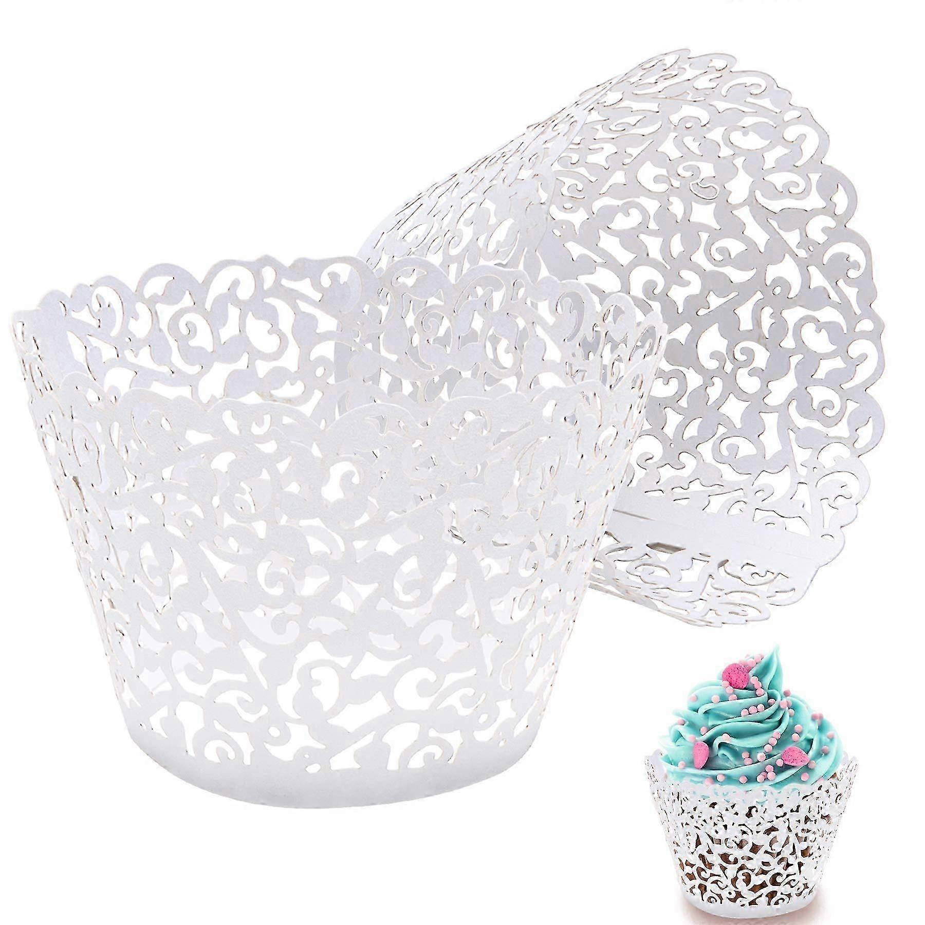 50pcs white Cupcake Wrappers Lace Cupcake Liners Laser Cut Cupcake Papers Cupcake Cups Cases for Wedding/Birthday Party Decoration