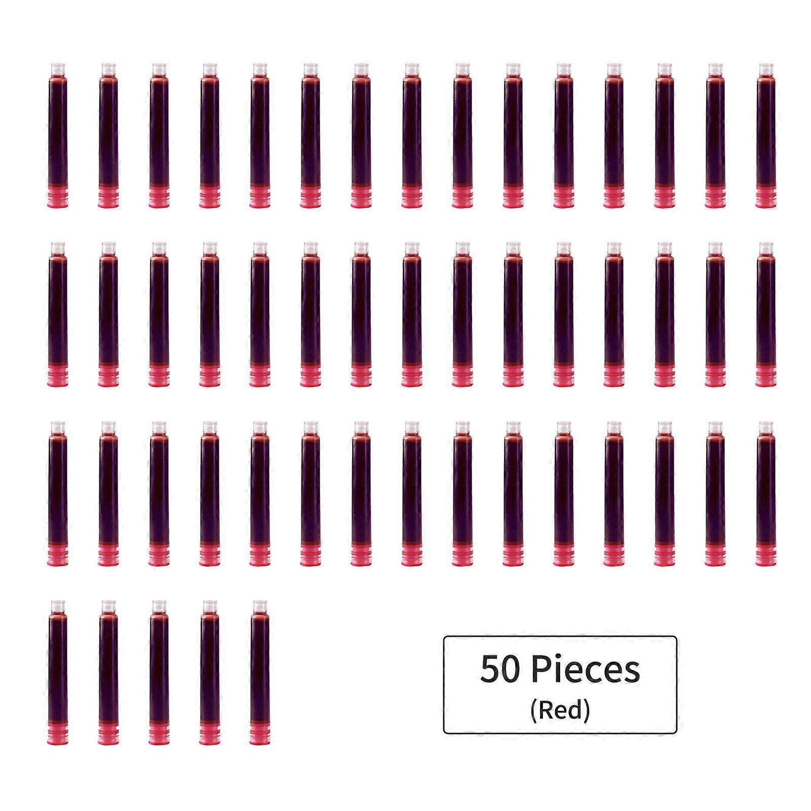 50 Pieces Fountain Pen Ink Cartridges Red Color Ink Refill Cartridge with 3.4 mm Bore Diameter for Office School Student Writing Stationery Supplies