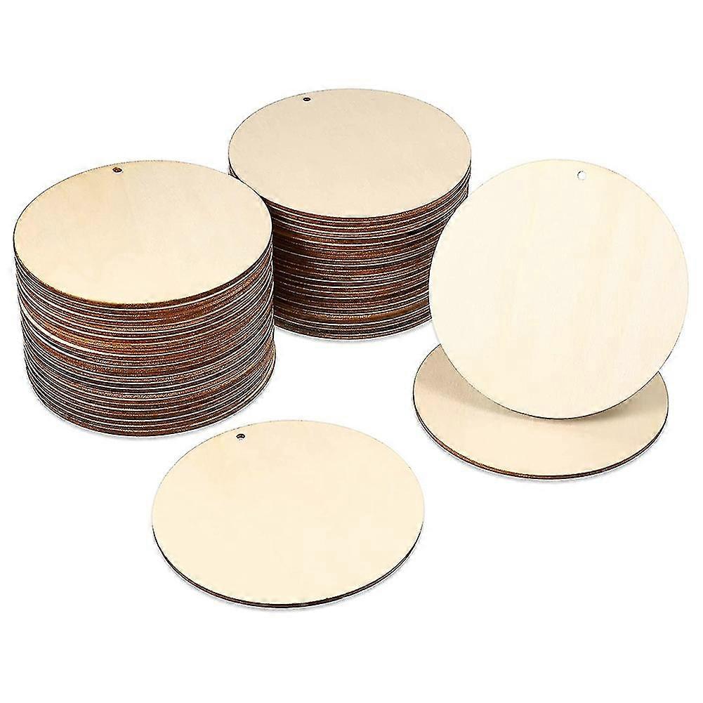50 Pieces Wood Circles Unfinished Round Cutouts -drilled Tags Slices Blank Wooden Discs With Holes