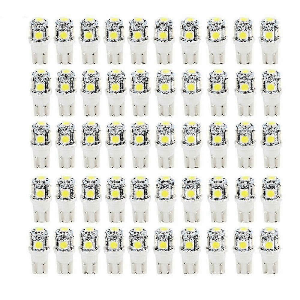 50pcs Super White T10 Wedge LED Light Bulbs - 5-SMD 5050 Design for European Market