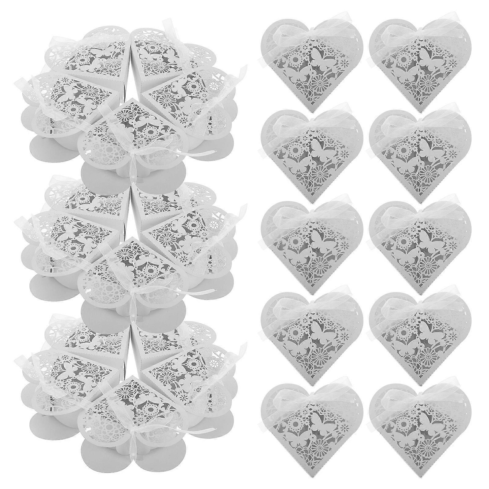 50pcs Heart Shaped Wedding Favor Boxes with Butterfly & Flower Design, Candy Gift Boxes with Elegant Ribbon for Valentine's Day, Birthday, Shower &