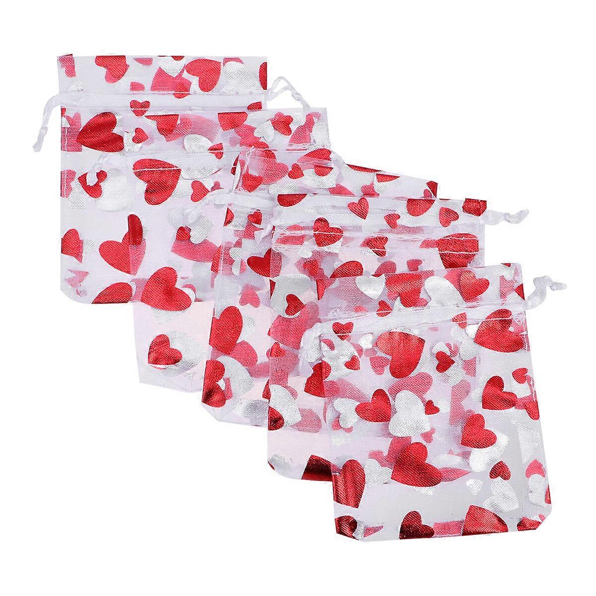 50pcs Red Heart Pattern Drawstring Present Bags Pretty Gift Candy Favor Storage Packing Bags Wedding Party Supplies (Red Heart-8 x 10cm)