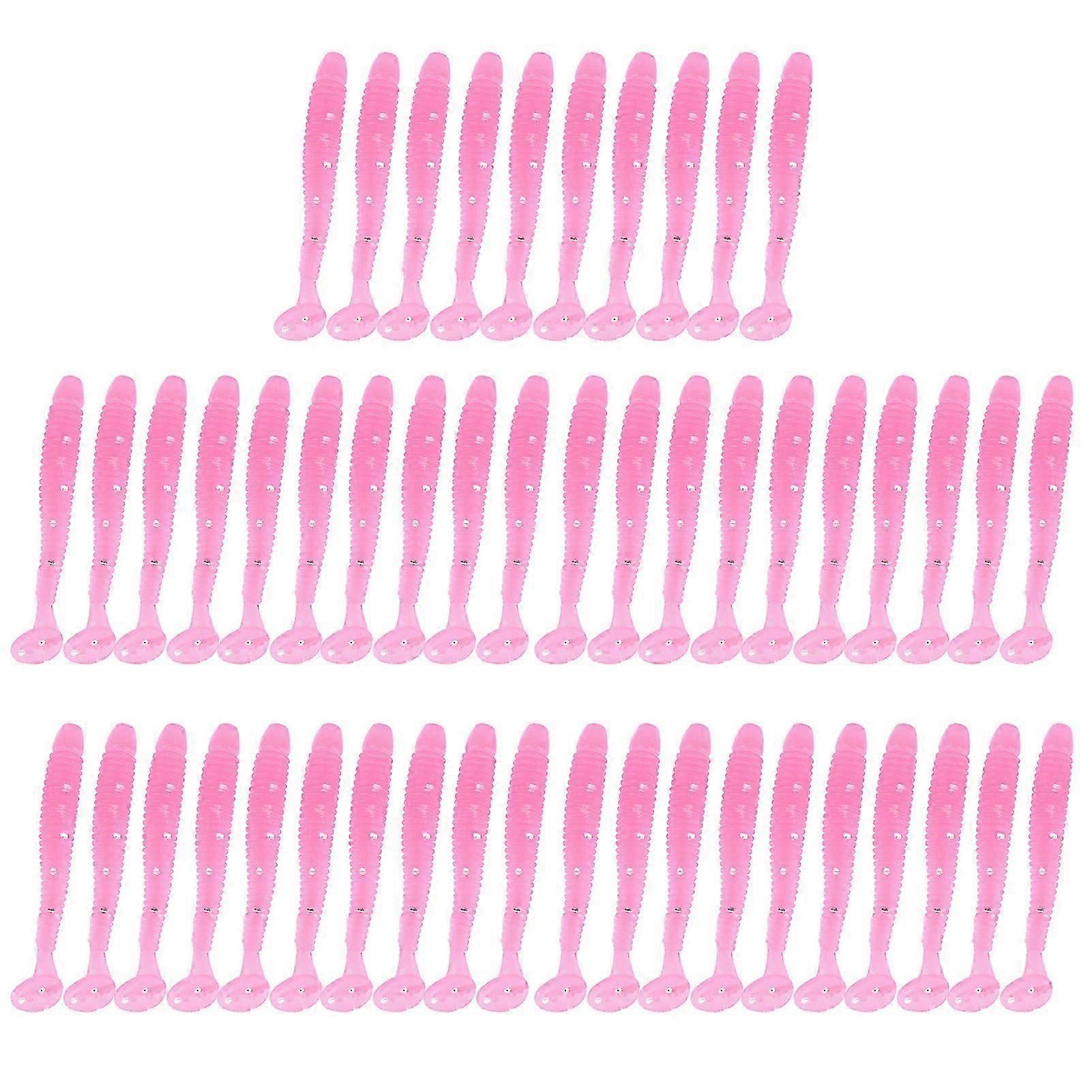 50PCS 5cm Soft Plastic Fishing Lures T tail Grub Worm Baits Fish Tackle Accessory Pink