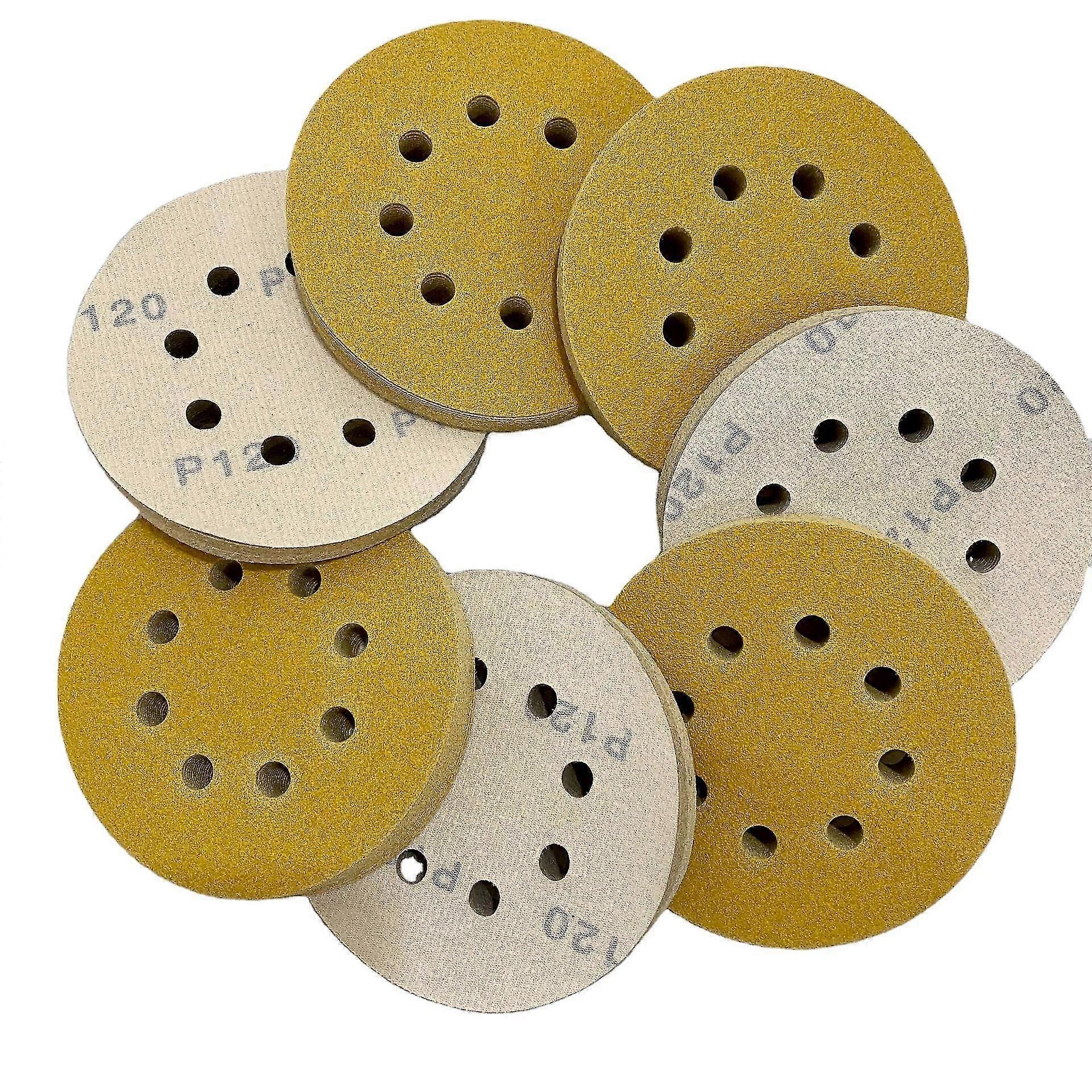 50 Pieces Of 8 Holes 5 Size Gold Velvet Disc Sandpaper Set