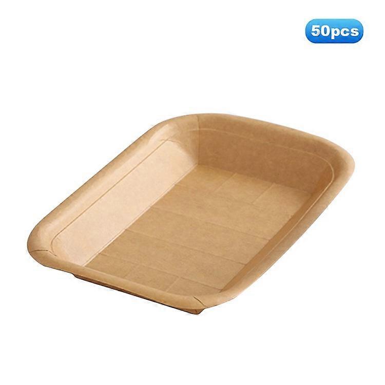 50Pcs 14.5x20.5cm Disposable Kraft Paper Food Trays Barbecue Picnic French Fries Rectangular Plates (BPA Free, FDA Certified)