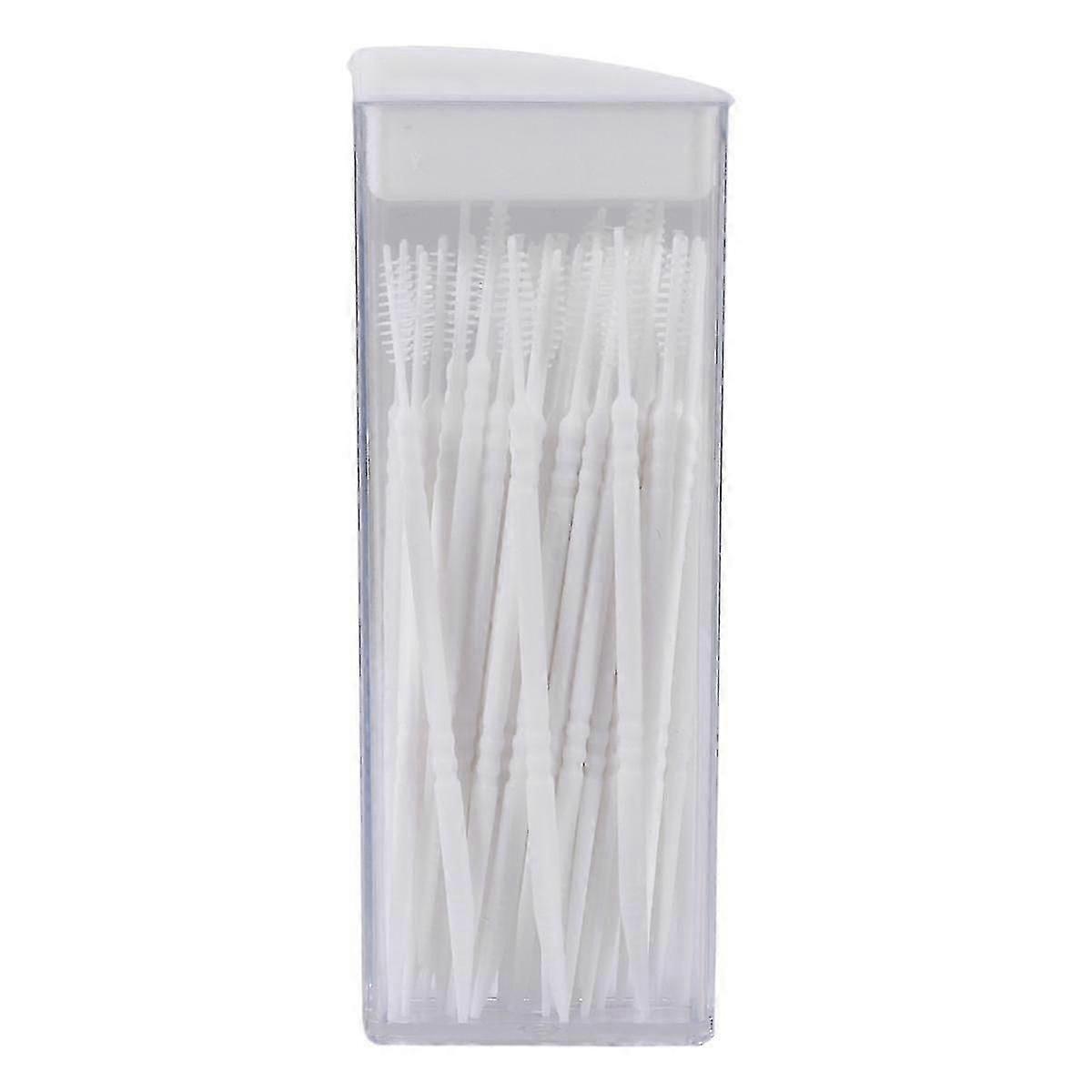 50 Pcs 2-Way Plastic Toothpicks with Interdental Brush Cleaners, Portable Box, Random Color