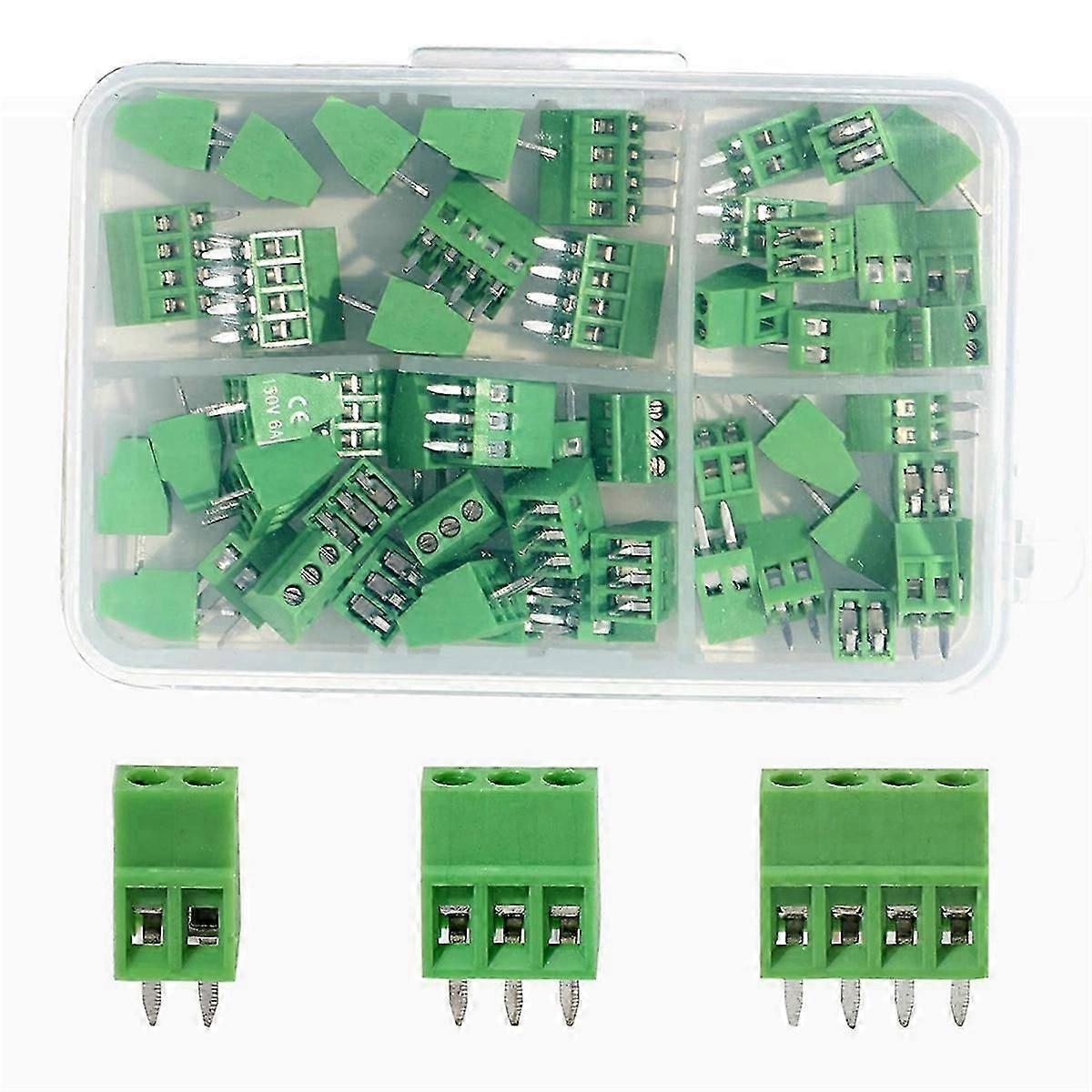 50PCS 2.54mm 0.1 Inch Pitch PCB Mount Screw Terminal Block Connector, 2P 3P 4P Terminals 150V 6A