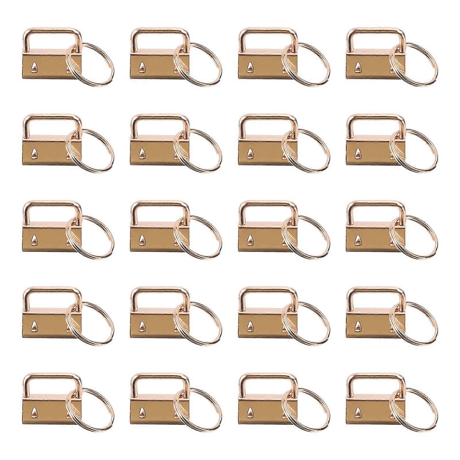 50Pcs DIY Fabric Key Chain Fob Wristlet with Key Ring for Lanyard Luggage Strap Accessories25mm, Golden)