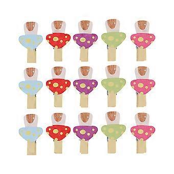 50pcs DIY Handmade Snacks Clamp Mushroom Wooden Clip Decor Photo Clip Ornament Craft with Hemp Rope