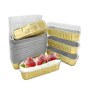 50pcs Disposable Aluminum Baking Cups Mini Loaf Pans Rectangle Muffin Tins Mini Narrow Cake Pans Fo