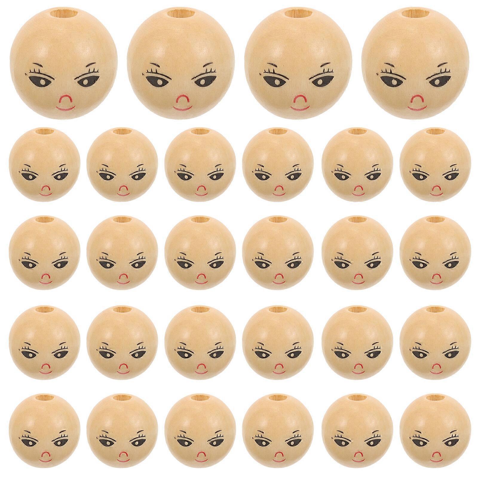 50Pcs Round Wooden Smile Face Beads Wood Loose Beads Round Spacer Beads with Hole