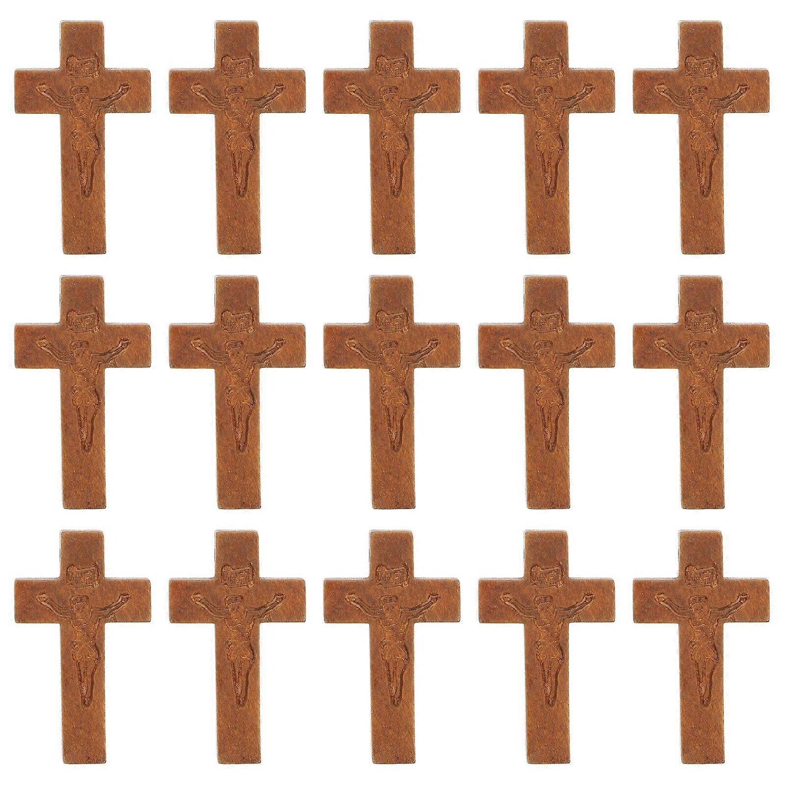 50pcs Colored Wooden Crafts Christian Cross Decorations Jewelry Necklace Ornaments for Women Men (Coffee)