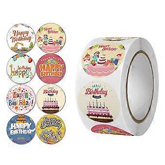 500 Pcs/Roll Latest Happy Birthday Stickers Adorable Round Birthday Stickers