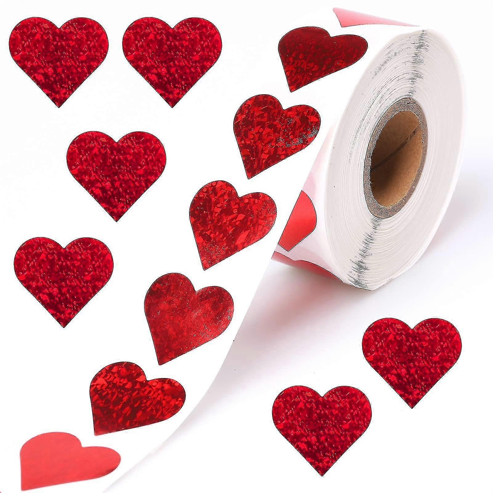 500 Pcs 1" Holographic Red Heart Stickers Roll, Glitter Tiny Hearts Sticker For Kids, Use For Valentines Day Love Decorations, Award Charts, Scrapbook
