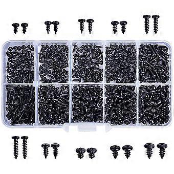 500 قطعة الكربون الصلب جولة رئيس الذاتي التنصت مسامير تشكيلة كيت ، 10 حجم أسود غاطسة رئيس فيليبس عطلة مسامير مع صندوق تخزين للخشب جيش التحرير الشعبى الصينى