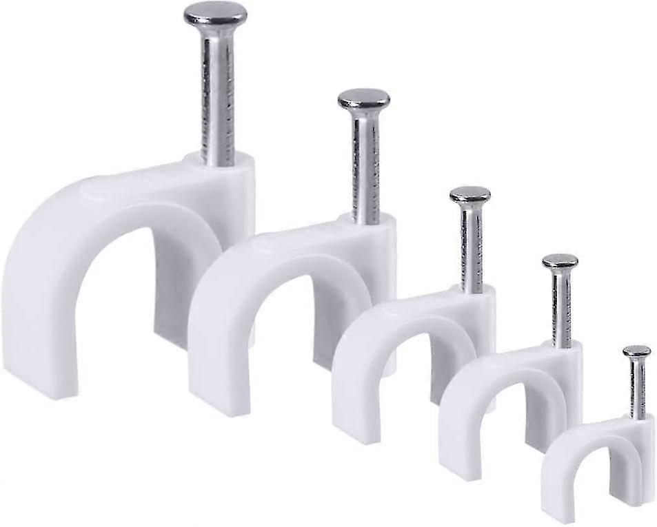 500pcs Round Cable Ties With Steel Nail, Cable Clamp In 5 Different Sizes Of 4mm/5mm/6mm/8mm/10mm, Fastening And Wire Organizer, White, Versailles