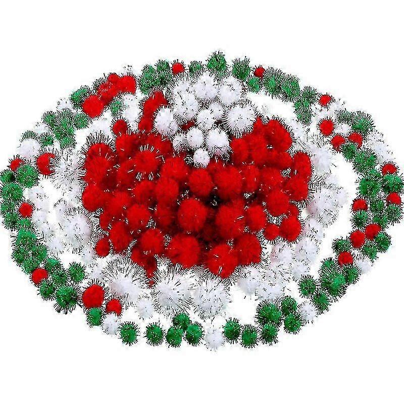 500 Pieces Christmas Pom Poms Assorted Glitter Pom Poms For Christmas Diy Crafts Party Decorations, 3 Colors