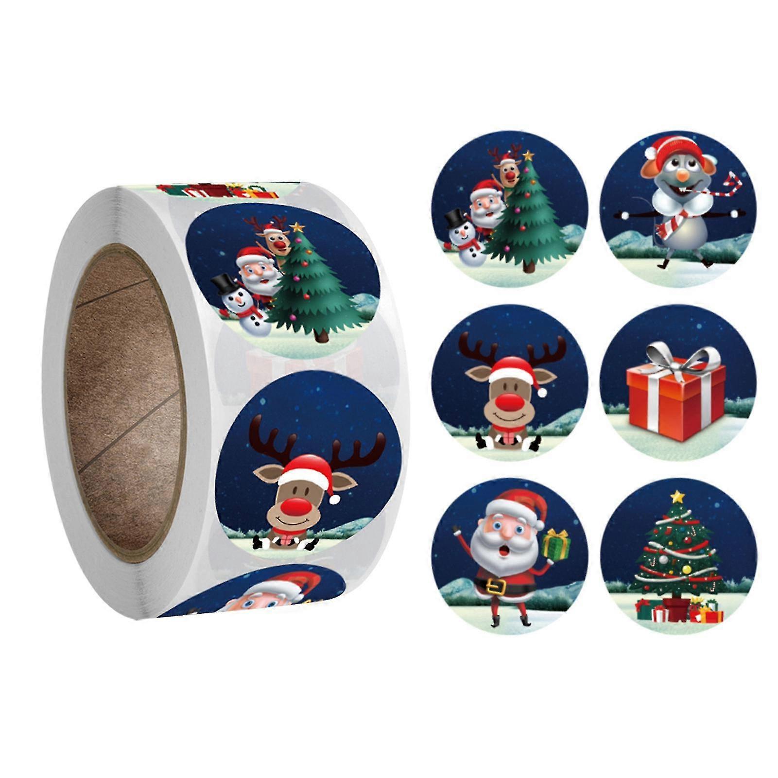 500pcs/roll Christmas Sticker Multi-patterns Peel And Stick Self-adhesive Strong Stickiness Thicker Gift Decoration Round Xmas Gift Candy Bag Envelope