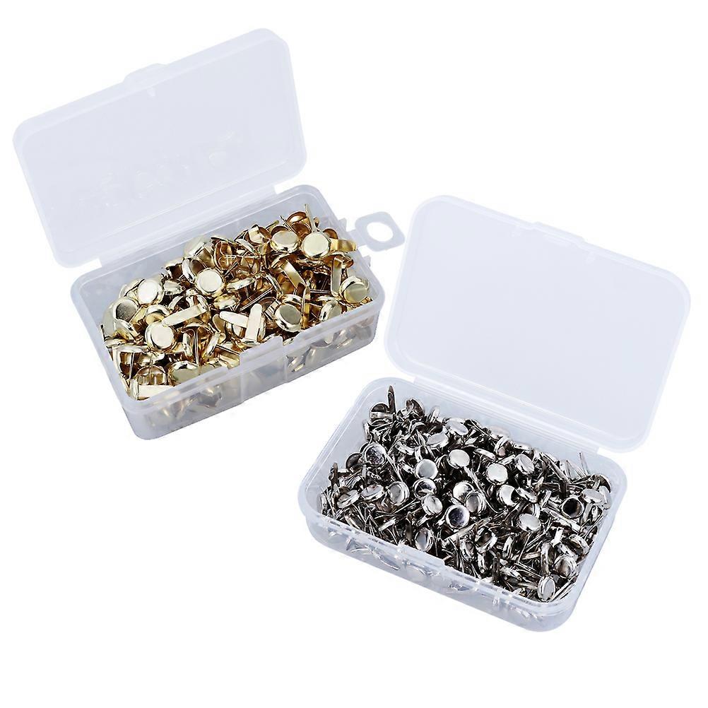 500pcs Paper Fasteners Electroplating Brads Round Metal Brads with Storage Box for Crafts DIY Silver and Gold