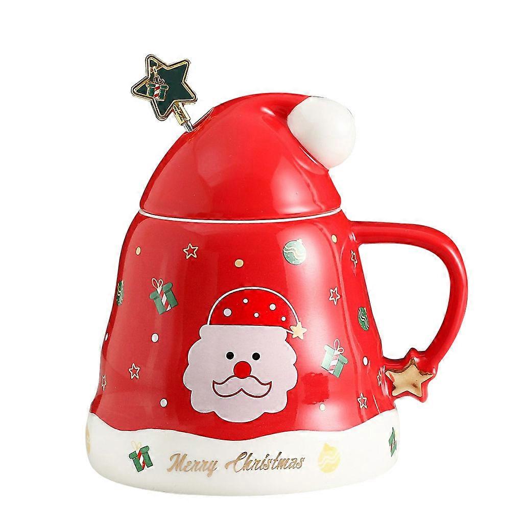 500ml Christmas Hat Shape Ceramic Coffee Mug with Lid Spoon Tea Milk Cup Gift Red
