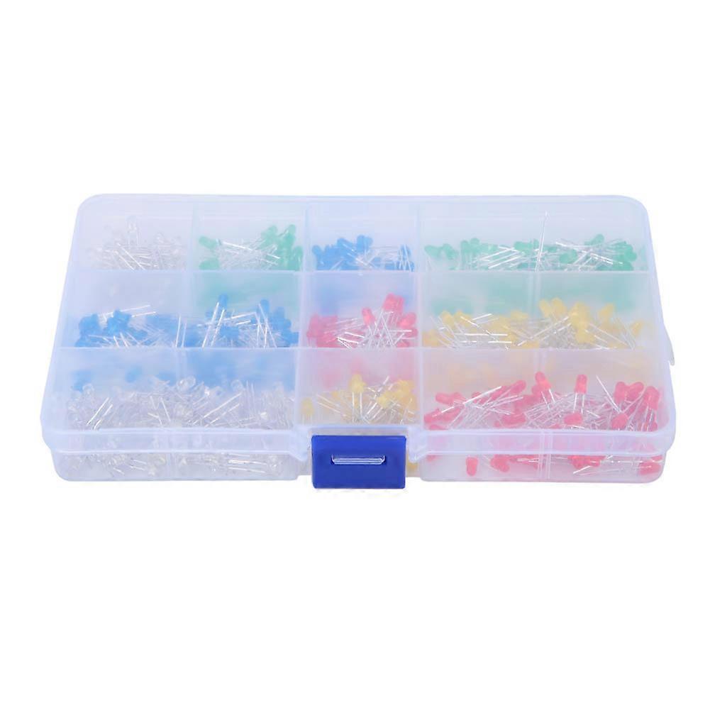 500Pcs Blue/Yellow/Red/Green/White 3mm Round Head LED Light Emitting Diode Kit Box