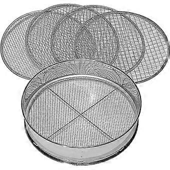 5000, 5in1 Garden Sieve, 5 Interchangeable Inserts 3,5,8,10,12 mm Finesse, Strainer for Soil, Stones, Compost, Sand and Gravel 30cm Round, Metal, Sta