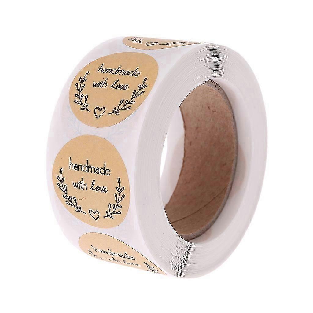 500pcs Natural Handmade With Love Kraft Paper Stickers Round Adhesive Labels Bak