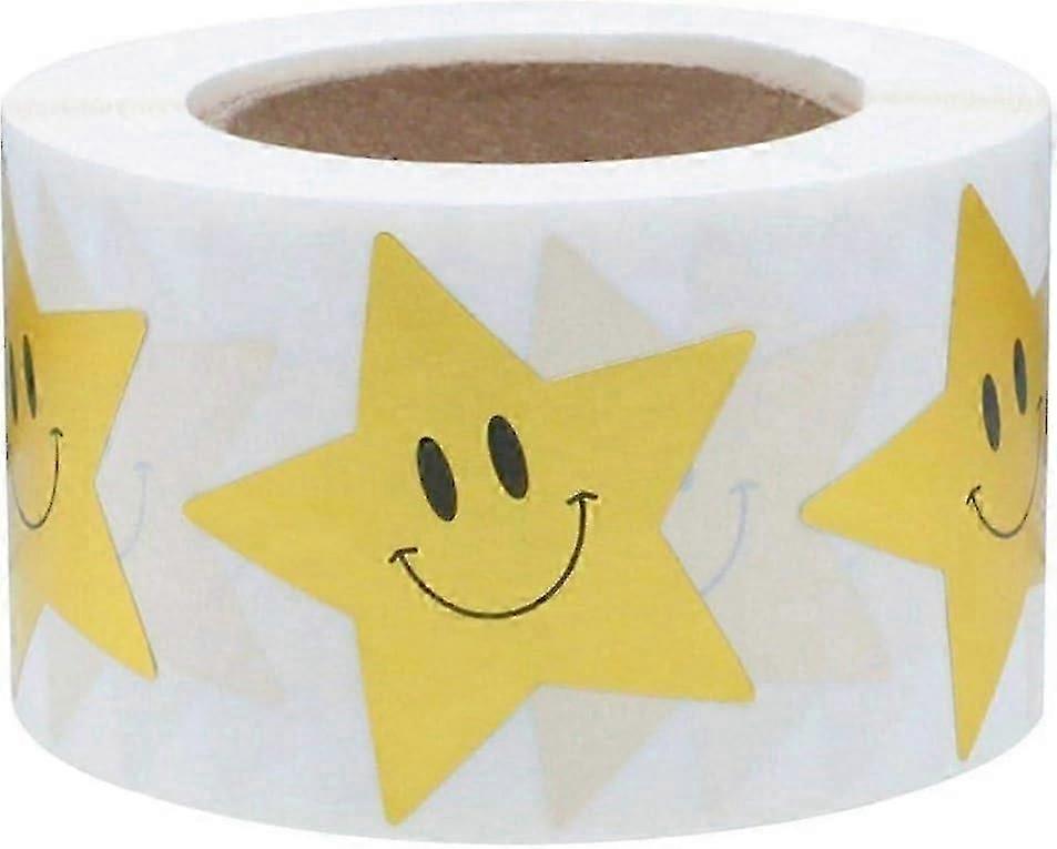 500pcs/roll Star Face Stickers, Gold Happy Face Star Shape Stickers, Foil Star Shape Sticker Labels With Happy Smile Scrapbooking 1.5 Inch