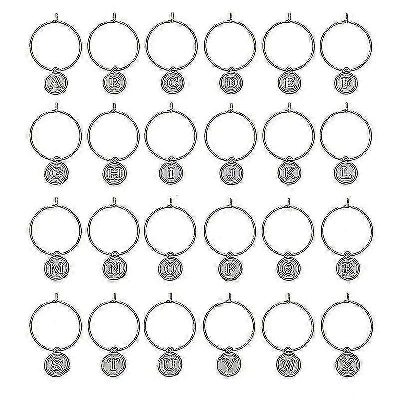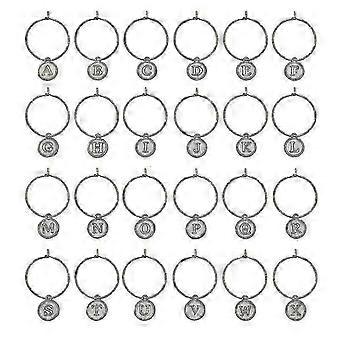 52 Pieces Wine Charms for Stem Glasses with Rings Tags Metal Letters Glass Charm Markers Letters Beads Markers for Wine Cocktail Champagne Party