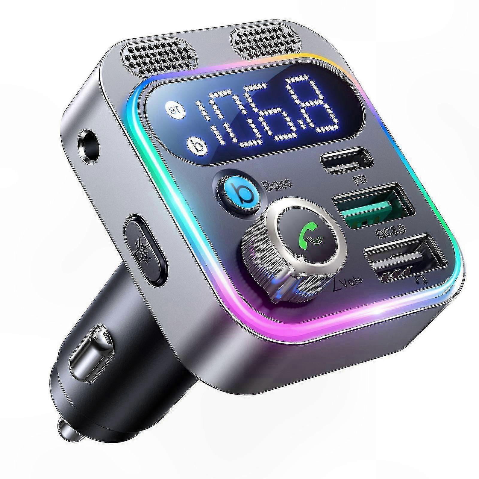 5.3 Bluetooth Car FM Transmitter, 48W HiFi Stereo Sound with Dual Microphone, Hands-Free Calling Adapter for Cigarette Lighter, Enhanced Bass Performa