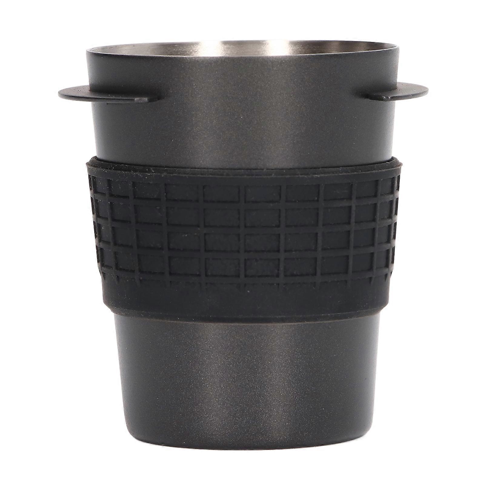 58mm Stainless Steel Coffee Dosing Cup Coffee Machine Handle Receiving Powder Cup with Silicone Ring Black