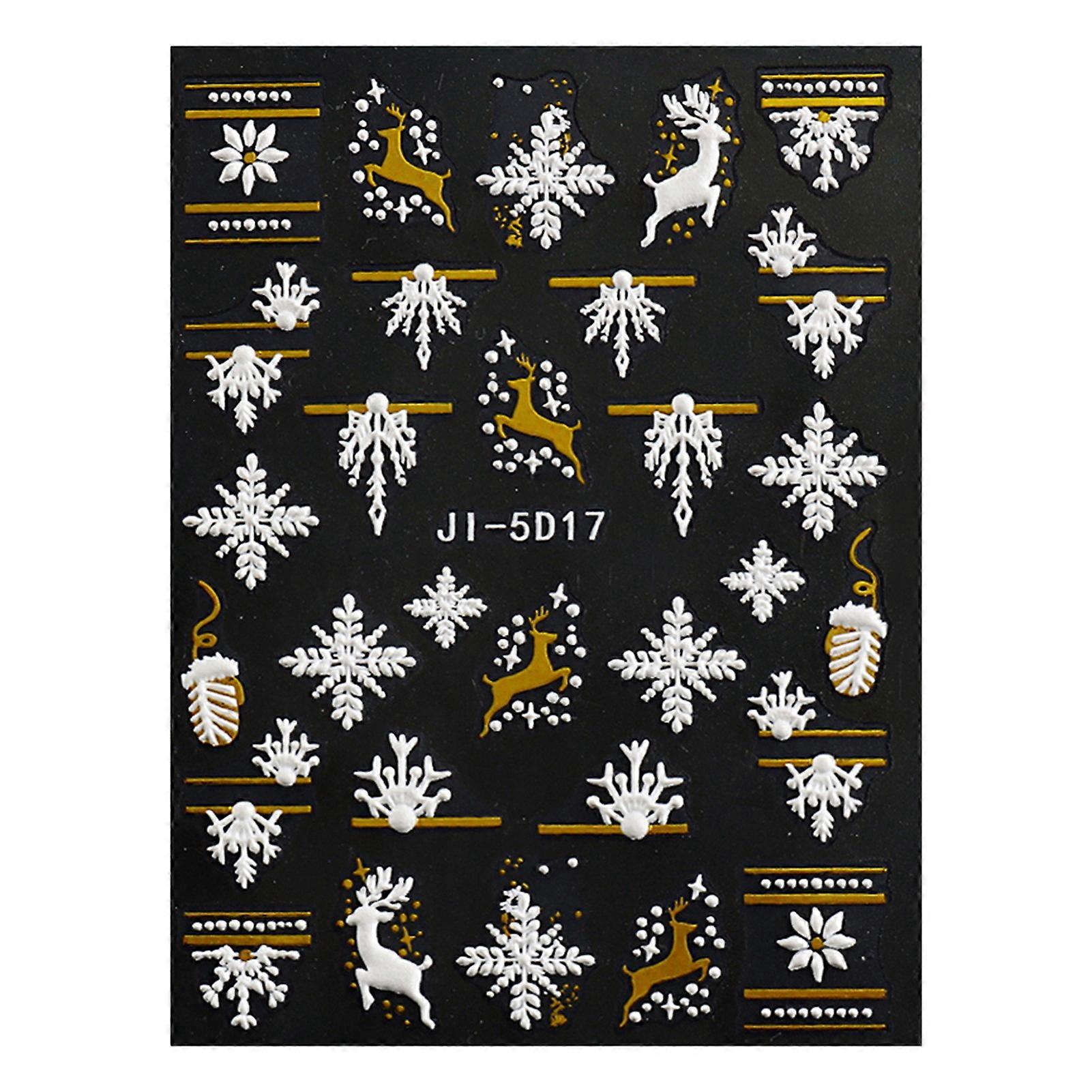 5D Nail Art Sticker Christmas Festive Snowflakes Cute Bear Designs Long-lasting Easy to Apply Manicure Decal for Women And Girls