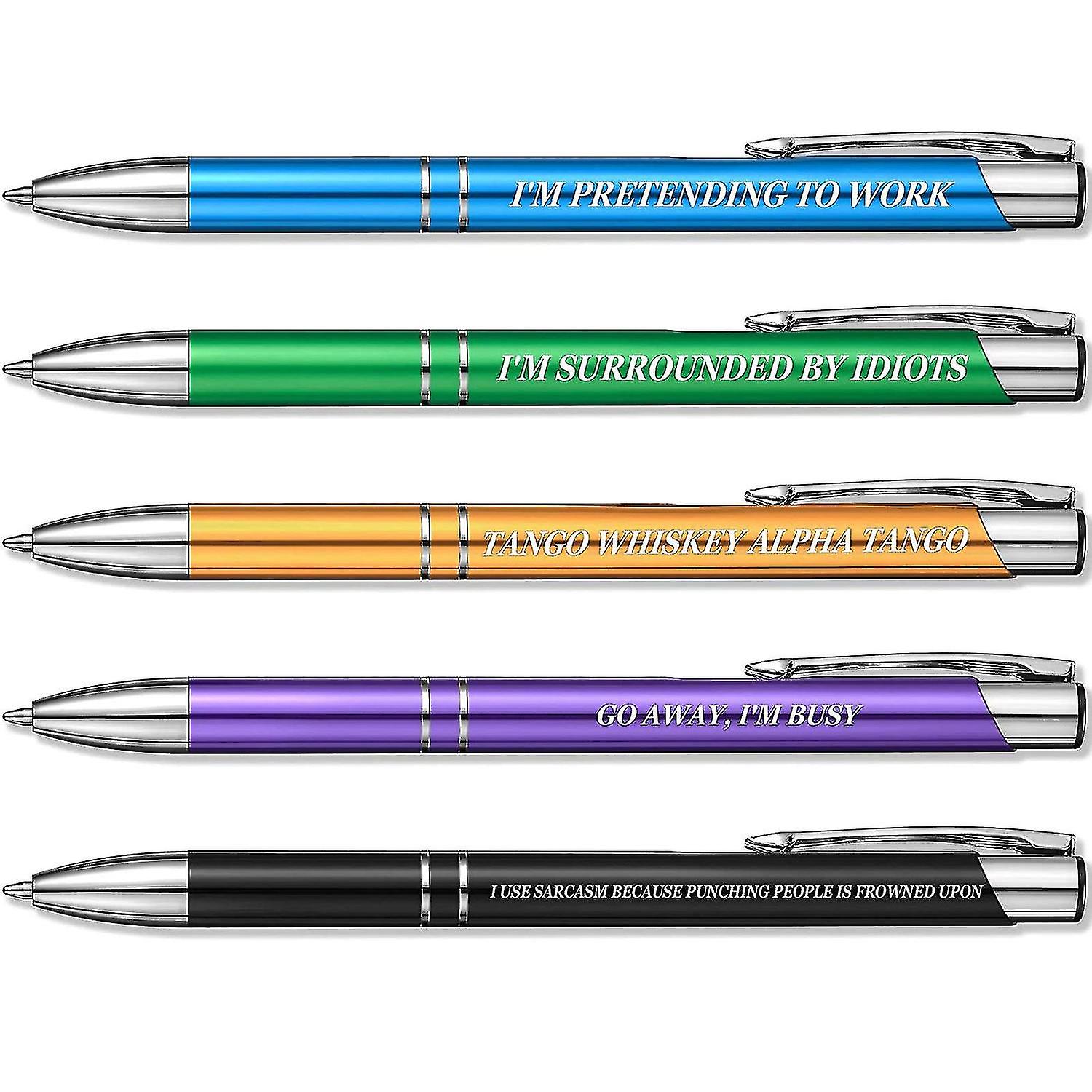 5pcs Funny Pen Set Colored Metal Ballpoint Pen Funny Quotes Ridiculously Motivational Pen Set