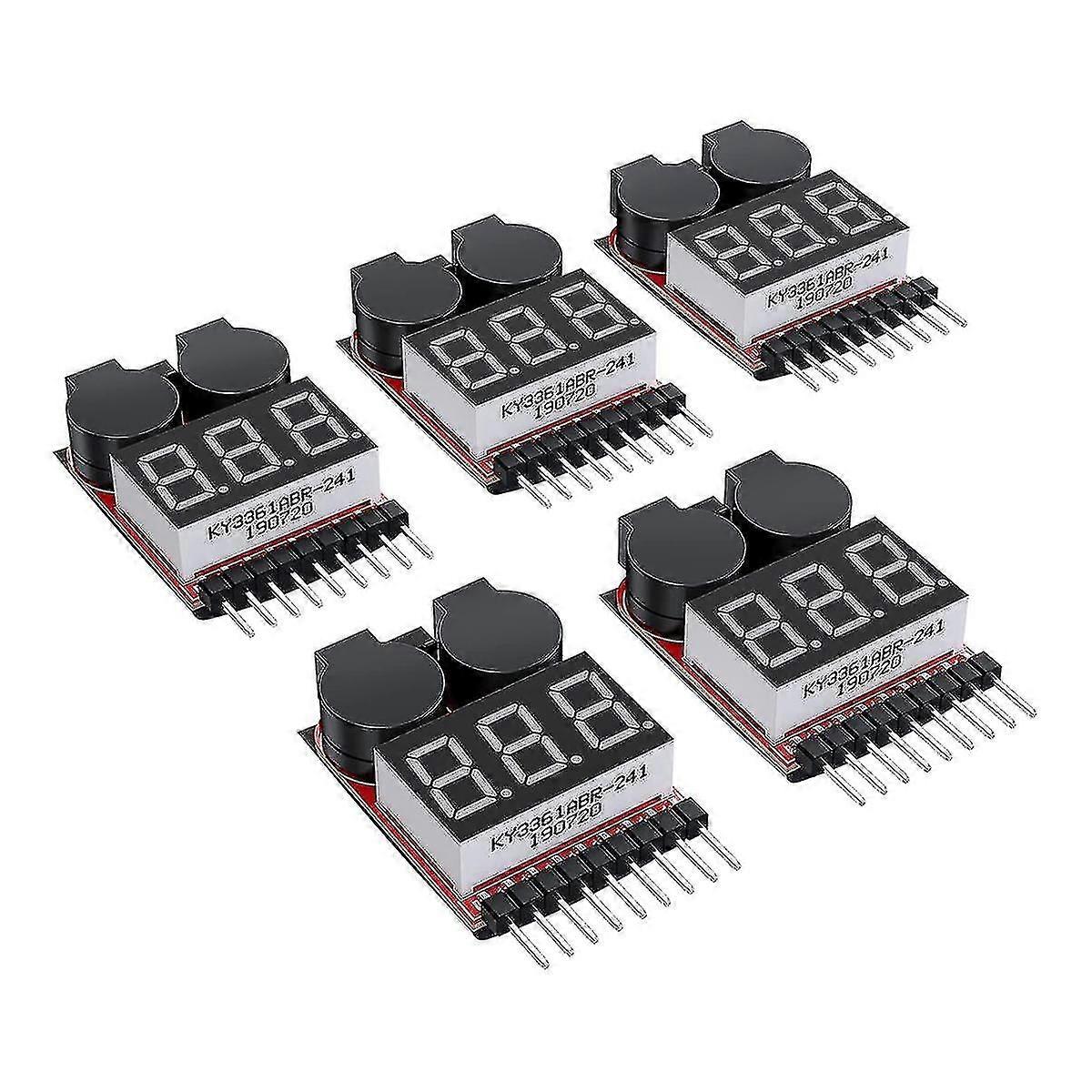 5pcs 2 In1 1-8s Lipo Battery Voltage Tester, Rc Low Voltage Buzzer Alarm, Battery Monitor Checker T-AH