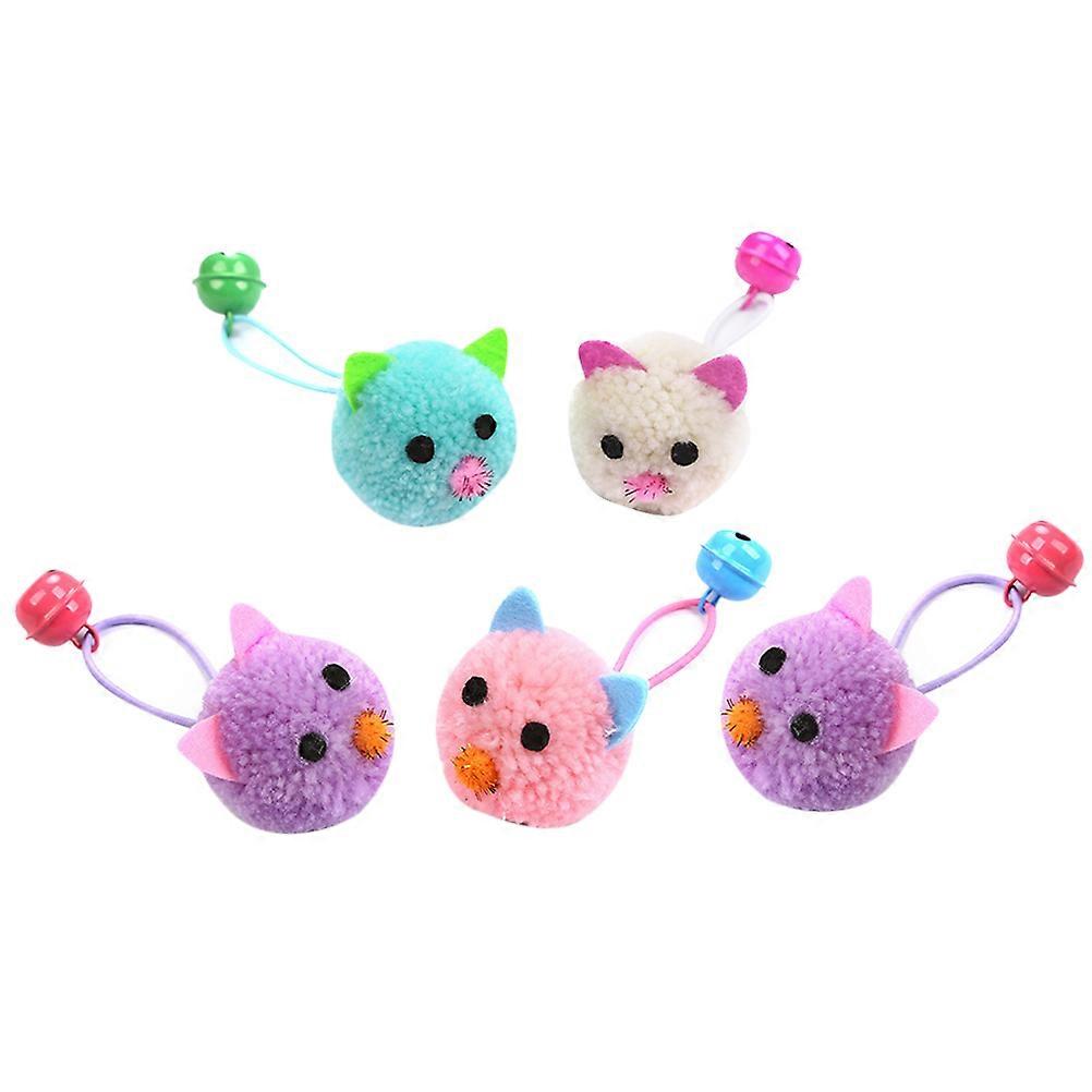 5pcs Plush Cat Bell with Mouse Head Design, Interactive Sound Molar for Chewing and Playing, Random Color