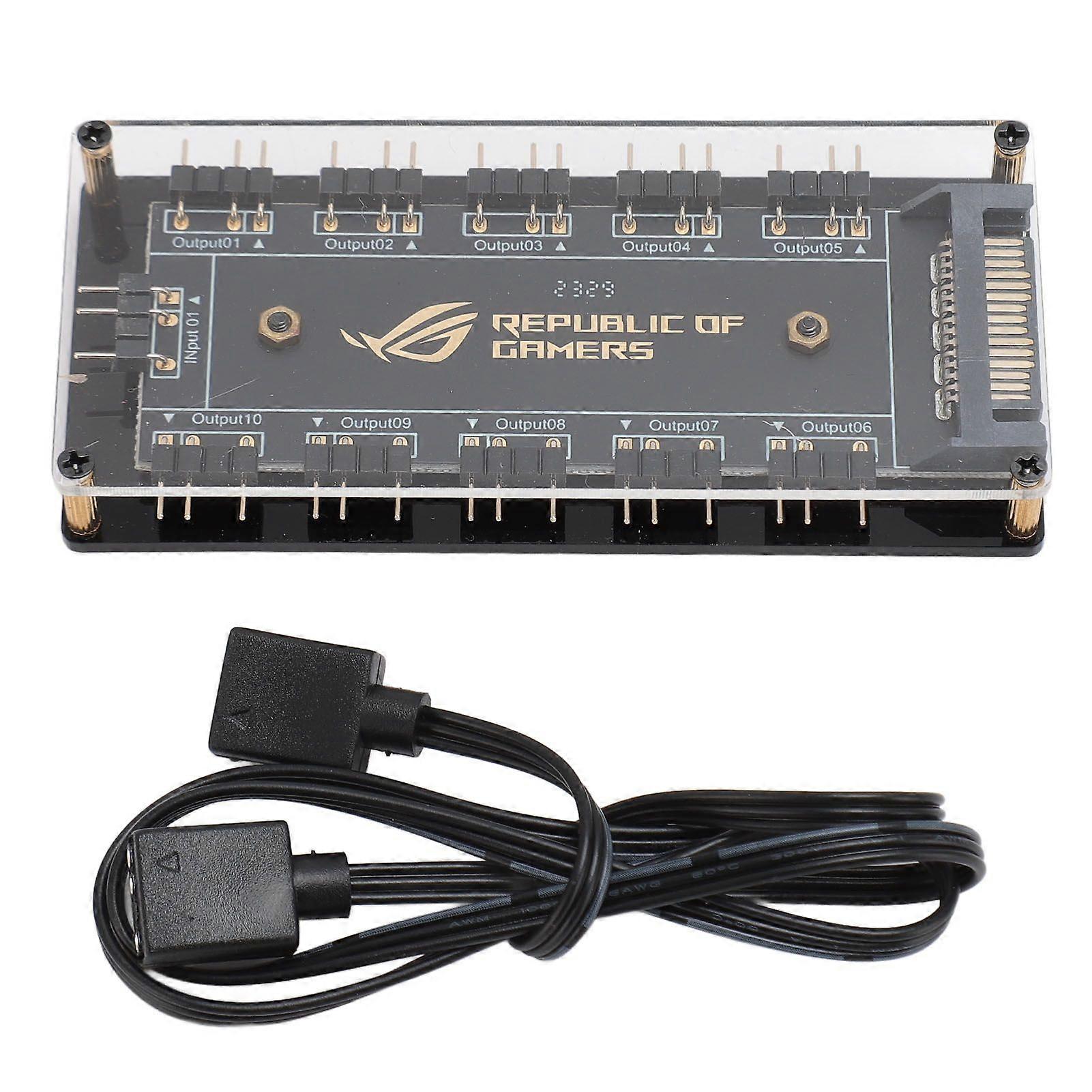 5V 3pin ARGB Hub 10 Way RGB Splitter Hub with Acrylic Case Motherboard Cable Universal RGB Fan Hub 10 Port for Main Board