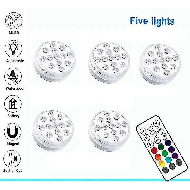 5x Pool Light Underwater Swimming Pool Lighting 13LEDs Updated Submersible Light IP68 Outdoor Spotlight for Aquarium Fish Tank Pond
