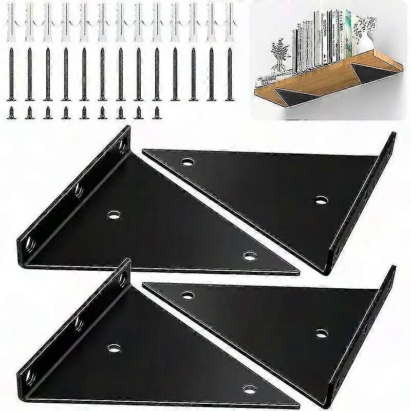 6 Inch Heavy Duty Iron Triangle Shelf Brackets, 4 Pack with Screws - Invisible Wall Mount