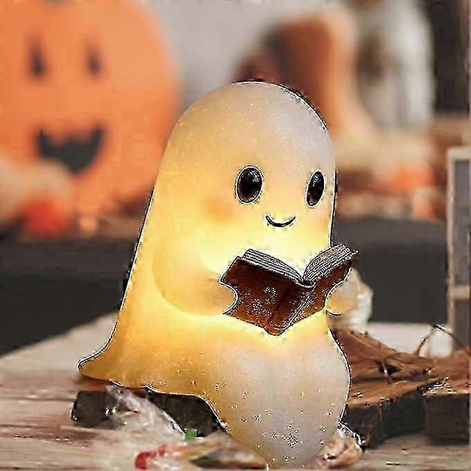 6inch Cute Ghost Reading Book Lamp, Halloween Ghost Night Light, Ghost Reading Night Lights, 3D LED Night Light Halloween, Light Up Halloween Decor, f