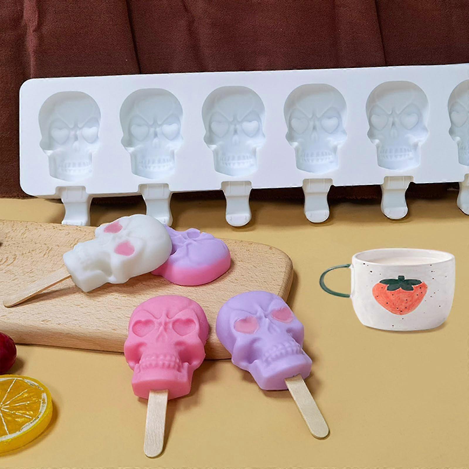 6 Cavities Popsicles Mold Non Stick Skull Head Silicone Ice Cream Mold Homemade Diy Dessert Juice Ice Pop Molds For Kids