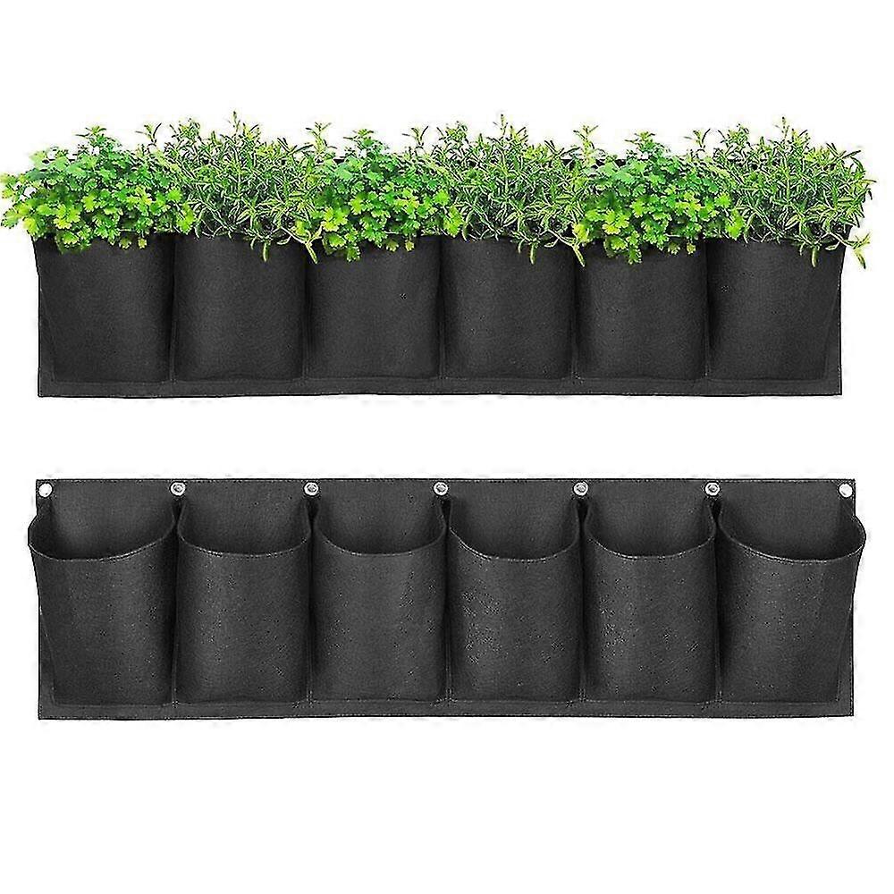 6 Pockets Horizontal Hanging Planting Bag Garden Plant Flower Grow Pouch