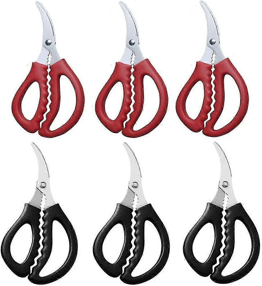 6 Pack Seafood Scissors Fish Crab Lobster Shrimp Crayfish Crawfish Scissors,multifunctional Stainless Steel Shears Seafood Scissors(black,red)